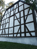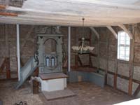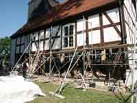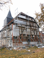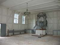 Im Kirchenraum wurden die Gefache der Wände verputzt und der Deckenputz repariert. Gefache, Fachwerk, Decke und Deckenbalken erhielten