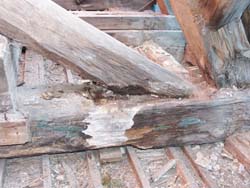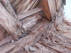 zerstören die Dachkonstruktion. Das Traufgesims wird durch die Sparren nach außen geschoben.
