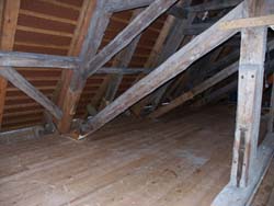 müssen. Die Putzdecke wurde abgenommen, um die Balken bearbeiten zu können.